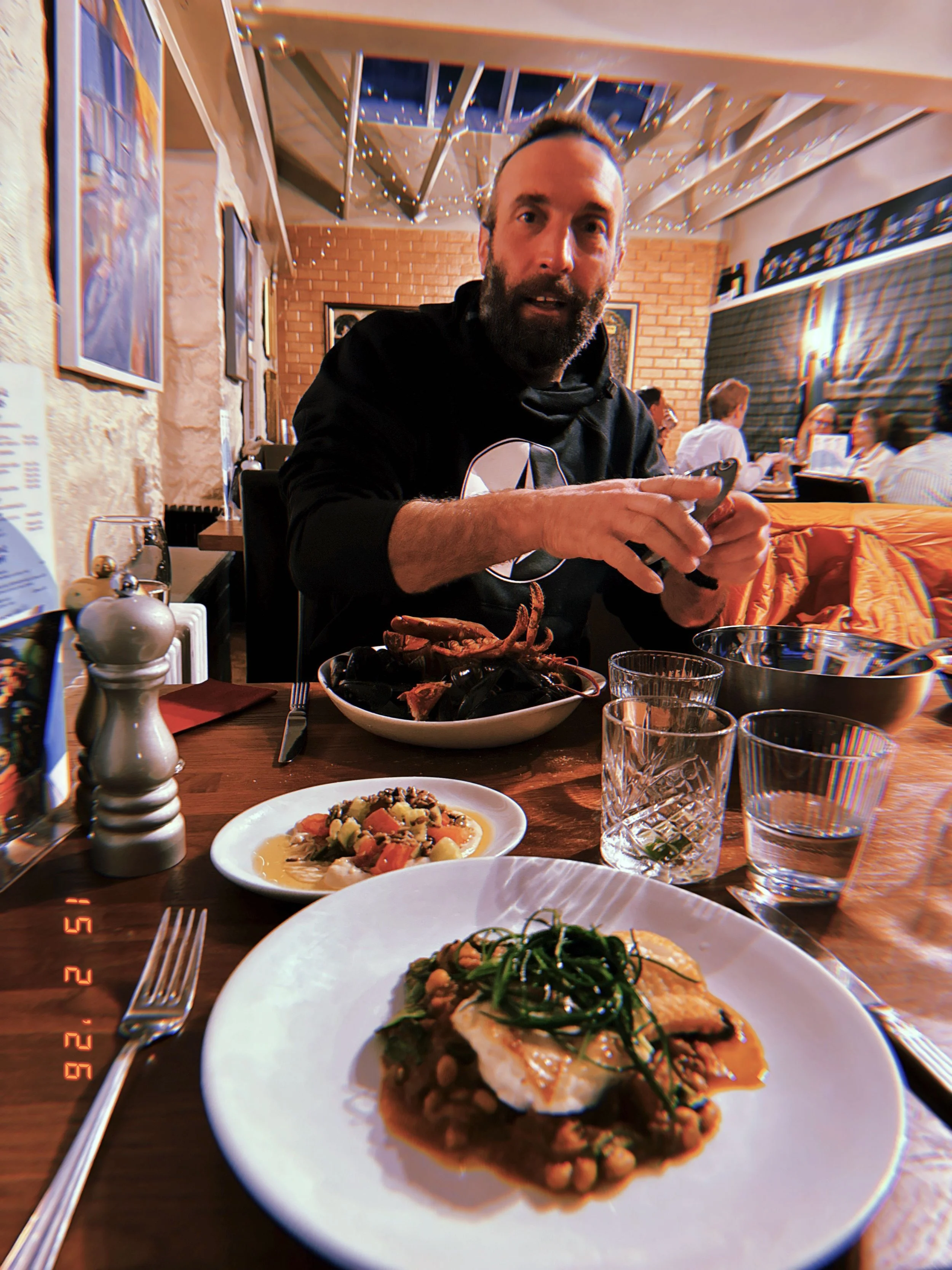 With Vinnie demanding lobster and prosecco, we booked a table at The Crannog for dinner. Great seafood all round, nice local gin and fair portions of mussels.