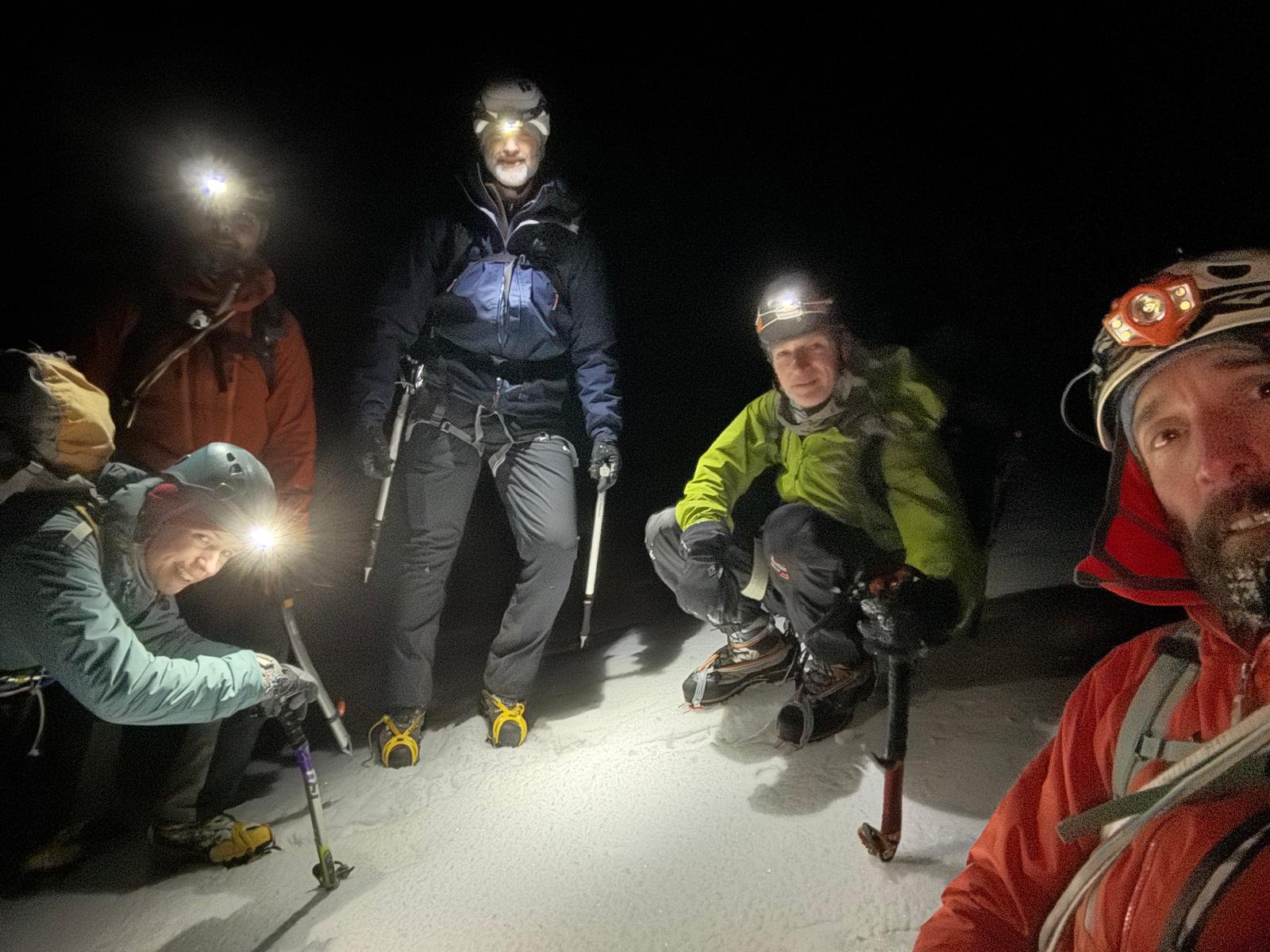 I’m hoping one of their party will give a full account of their story for me to include here (or perhaps even write a whole new piece?!): the short version is that they had ended up backing off their second line and had followed us into our gully. They had at some point taken a right fork (not left) and had wound up climbing steep turf steps in the dark, not long after apparently seeing Danny tumble to his death. The story goes that the rope only came out at these awkward final steps and that Vinnie took on the role of leading these sketchy moves. Also that Louise was an incredible guide, bringing a sense of control, steadiness and reassurance. And that this whole experience, rather than putting him off, has only cemented Harry’s desire to become a winter mountaineering obsessive. (He has subsequently invested in a pair of axes.) Back to the night in question and Danny and I filled the hours with a delicious dinner at the Clachaig before ordering in some pizzas for their eventual arrival back at the house at around midnight. An epic by any definition.